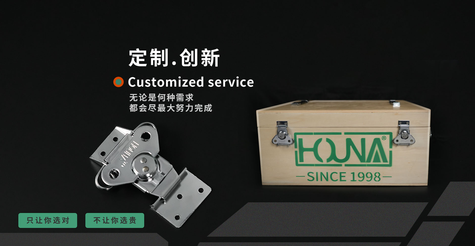 蘇州華納機(jī)電有限公司創(chuàng)于1998年;公司位于江蘇省蘇州市,隸屬蘇州潮汕商會(huì)理事單位,是一家專注木箱,航空箱,設(shè)備箱。各類箱體配套產(chǎn)品的研發(fā)與生產(chǎn),主要生產(chǎn)蝴蝶鎖扣、搭扣、拉手、包角、木箱整套配件等等,箱體五金為主體業(yè)務(wù)的大型品牌。讓每個(gè)裝上HOUNA驊納產(chǎn)品的箱子擁有至高的品質(zhì);HOUNA驊納品牌擁有極高的市場口碑,專業(yè)的設(shè)計(jì)研發(fā)團(tuán)隊(duì);實(shí)驗(yàn)室產(chǎn)品檢測團(tuán)隊(duì),科學(xué)的經(jīng)營模式,質(zhì)量(IS09001)及環(huán)境(ISO1400)管理體系標(biāo)準(zhǔn)化。曾被認(rèn)定為《中國馳名商標(biāo)》,《中國名牌》,《中國環(huán)境標(biāo)志產(chǎn)品》,《服務(wù)、誠信、質(zhì)量AAA級》并多次入選政府綠色采購清單。